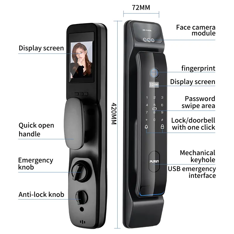 Bilang isang propesyonal na intelligent na lock manufacturer at supplier na nakaugat sa China, ang PuXin ay may mayaman na karanasan sa matalinong industriya ng lock ng pinto, na may paborableng mga bentahe sa presyo at saklaw ng karamihan sa mga European at American market. Ang PuXin DF65 3D Face Smart Lock, isang pangunahing biometric na produkto, ay nagtatampok ng high-precision binocular infrared face recognition algorithm at mataas na kalidad na pagpoproseso sa ibabaw, na tinitiyak ang mahusay na pag-unlock, tibay at anti-static na pagganap.
