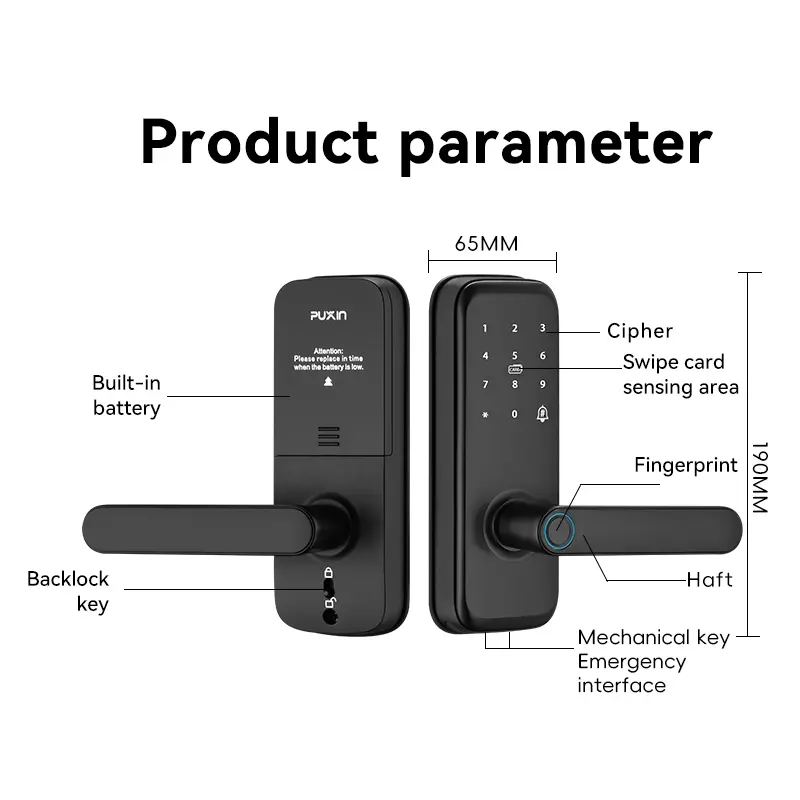 Ang PuXin SG-05 ay isang high-performance na smart deadbolt na iniakma para sa mga kahoy na pinto, na pinagsasama ang teknolohikal na innovation at user-friendly na disenyo upang mag-alok ng ligtas, maginhawang pag-access sa bahay.